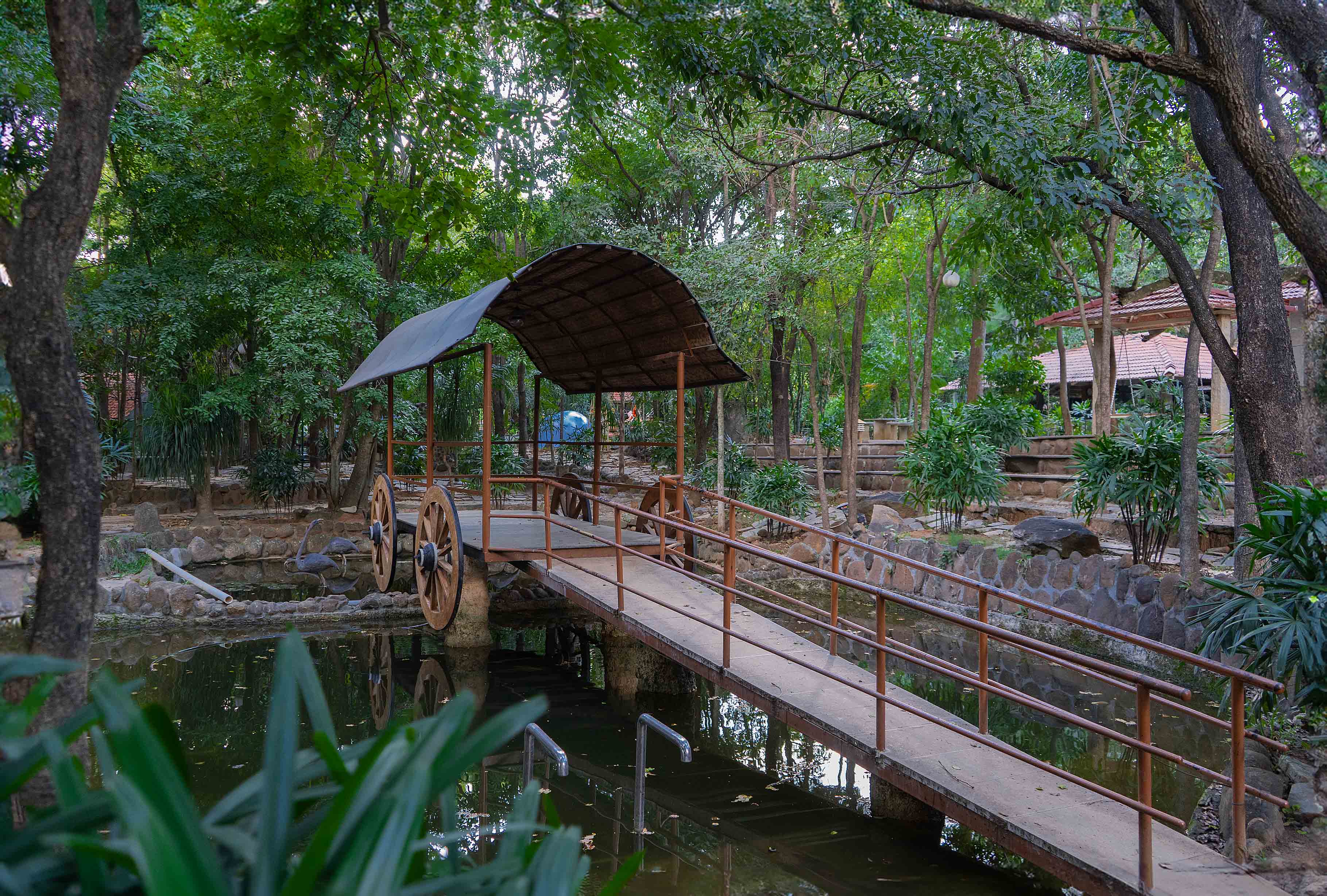 Spread across a vast expanse, the resort offers abundant opportunities for photography with stunningly unique architectural backdrops. Beautifully landscaped gardens, rustic cottages, and charming pathways all contribute to the resort’s allure. A delightful addition is the romantic paddle boat experience within the picturesque setting of the resort grounds.